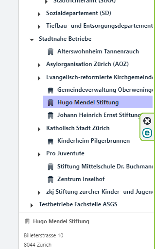 Es sind Stadtnahe Betriebe und sie gehören wie das Alterswohnheim Tannenrauch alleinig unter die Stadtnahmen Betriebe. Entweder am Schluss von allen anderen Unterknoten oder alle zuoberst.