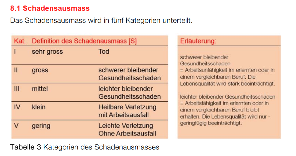 Die Risikomatrix sollte beschriftet werden mit den Informationen gemäss der SUVA Risikobeurteilung Risikoassessment_SUVA.pdf (Download von https://www.suva.ch/de-ch/download/dokument/schulungsunterlagen-um-risiken-zu-beurteilen-und-zu-mindern/standard-variante--66099.D).