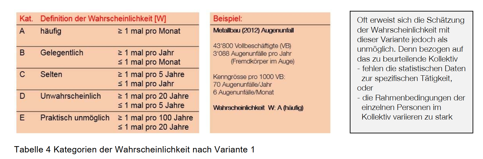 So wird die Risikobeurteilung nicht einheitlich sondern nach eigenem Gutdünken vorgenommen und es muss immer zusätzlich geschult und dokumentiert werden, was mit den einzelnen Stufen gemeint ist und welche Bedeutung diese haben.